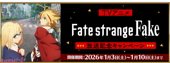 『TV アニメ「Fate/strange Fake」放送記念 ピックアップ召喚』期間:2026年1月3日(土)18:00~1月16日(金)12:59