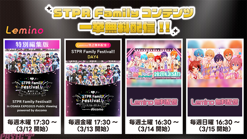 The post 【レミノで春のSTPR祭り】STPR Familyのライブ映像が「Lemino」で一挙解禁! 「STPR Family Festival!!」の2公演を含む豪華ラインナップが本日より順次配信開始 first appeared on PASH! PLUS.
