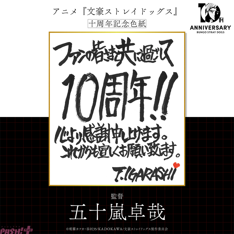 The post 【文スト】アニメ『文豪ストレイドッグス』十周年記念PVが公開! 原作:朝霧カフカさんや漫画:春河35さんからお祝い色紙も到着 first appeared on PASH! PLUS.