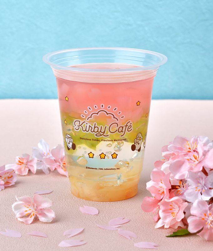 また、別会場のグッズストア“カービィカフェ ザ・ストア”でも、期間限定のテイクアウトドリンク“はるかぜとともに”が登場!ぽかぽか陽気のはらっぱをイメージしたドリンクです。さわやかなレモンフレーバーのなかで、やさしい甘さのさくらの花びらゼリーと白桃が出会うことで、甘酸っぱい味わいに。プププランドに吹くはるかぜを感じながら、カービィと一緒に冒険の旅に出かけましょう!