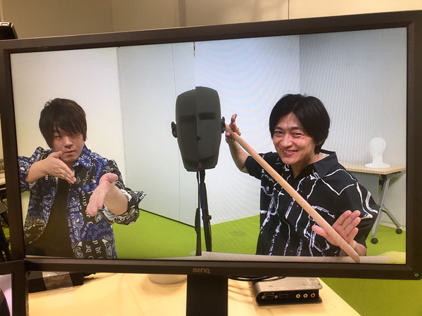 また、配信の後半では「ダミヘ企画!俺の女になれ!」も実施。“ひとりの女性を奪い合う”というシチュエーションで、下野さんと松岡さんがダミーヘッドマイクへアドリブを囁きます。最初のお題は「夜あそび高校の不良男子2人」では、「よぉ、今日も可愛いな」「先輩、こっちだけみろよ!」という甘いセリフを連発します。また、2番目の「幼稚園で、真面目な男の子とやんちゃな男の子が先生を取り合う」というお題では、子ども声で熾烈なバトルを展開。松岡さんは広い空間を生かしてダミーヘッドマイクを使った演技を楽しんでいました。
