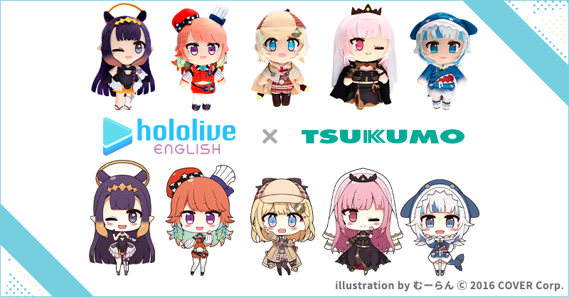 カバー株は、同社が運営する“ホロライブプロダクション”傘下の英語圏VTuberグループ“ホロライブEnglish”1stジェネレーション“hololive English -Myth-”において、ヤマダデンキが展開する、パソコンおよびパソコン周辺機器を販売するTSUKUMO(ツクモ)ブランドより、ぬいぐるみとラバーキーホルダーを2022年4月1日12:00から、受注販売開始することをお知らせいたします。