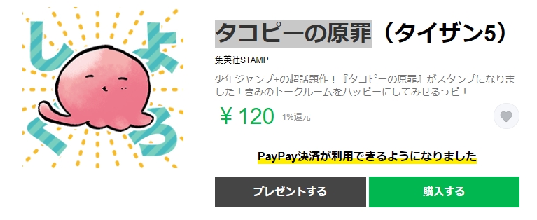 LINEが運営するコミュニケーションアプリ『LINE』内のスタンプショップにて、少年ジャンプ+の超話題作『タコピーの原罪』のLINEスタンプ『タコピーの原罪(タイザン5)』が配信中です。価格は120円。