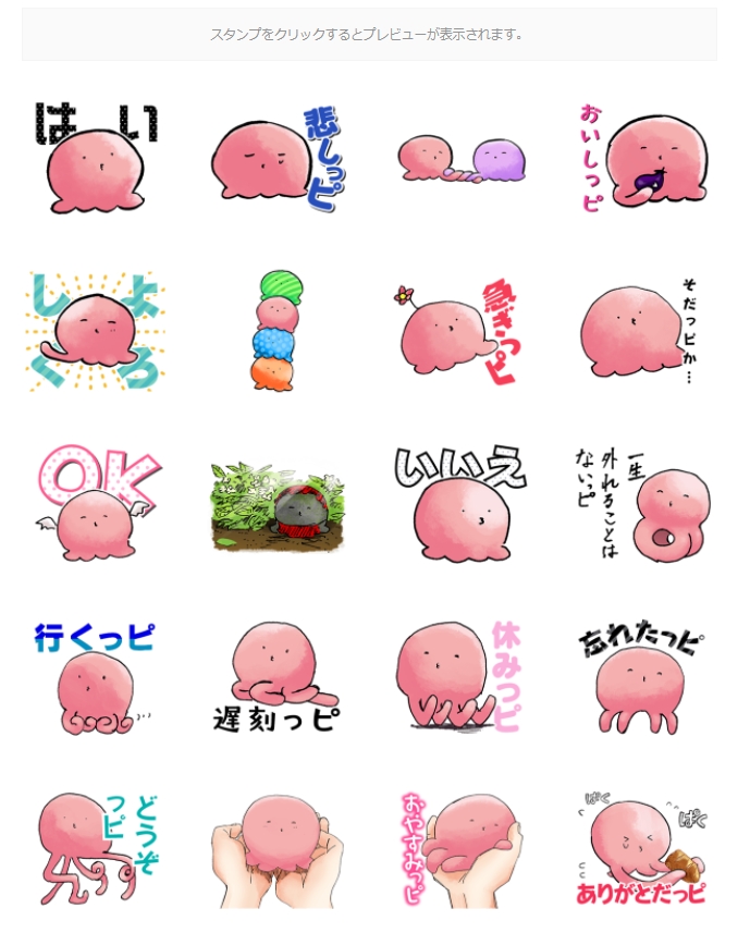 スタンプは全40種。タコピーのかわいいスタンプでトークルームをハッピーにしてみては?