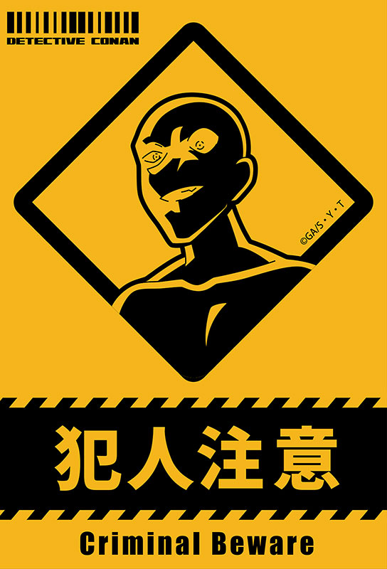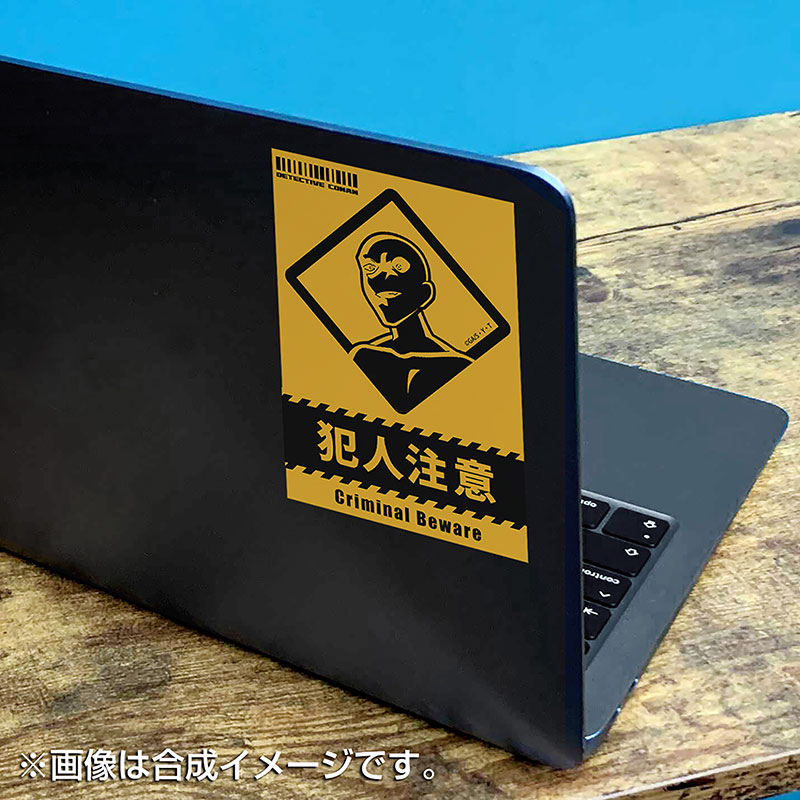 色々なものに貼って楽しめる、『名探偵コナン』に登場する“正体の分からない犯人”への注意を促すステッカーです。