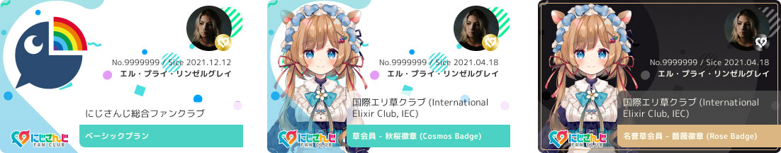 ※上記画像の左から、にじさんじ総合会員、ベーシック会員様(年額、月額)、プレミアム年間プラン会員様アプリ版会員証