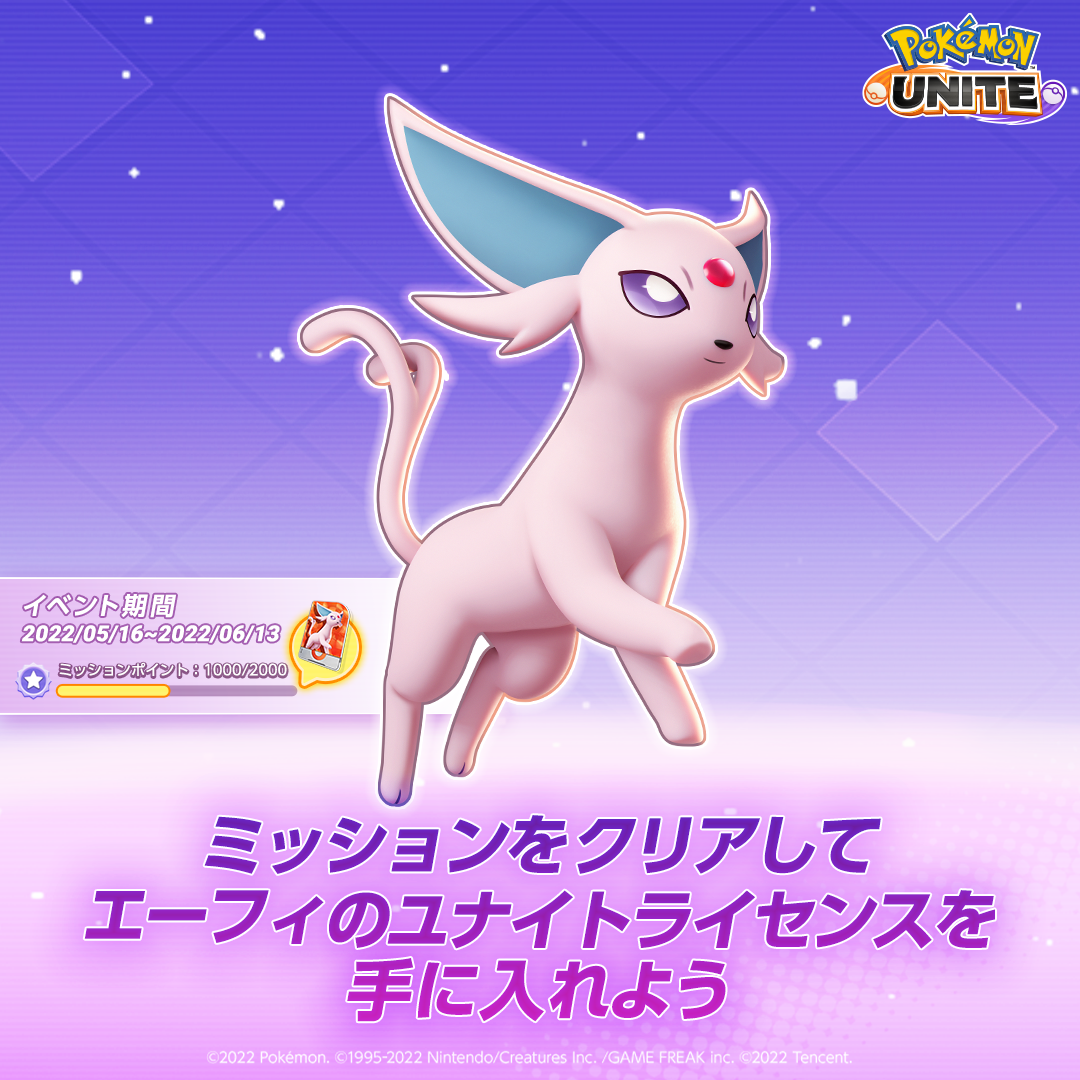 本日5月16日16:00より、ミッションをたくさんこなすとエーフィのユナイトライセンスが無料で入手できるイベントが開催中。また、“エオスざスタイル”のホロウェアも登場します。