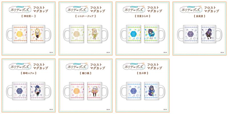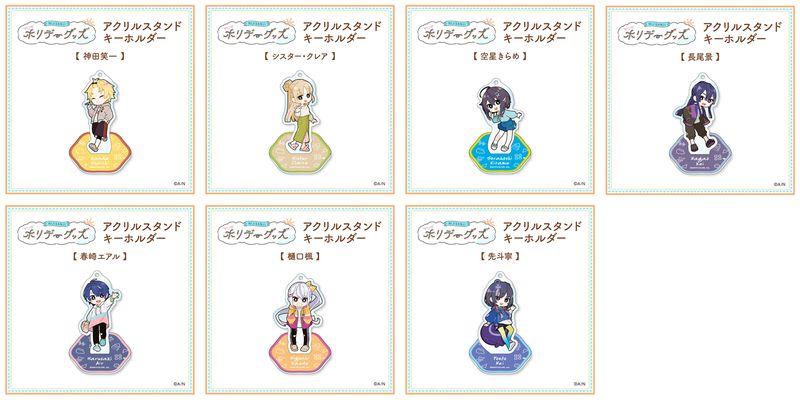 にじさんじライバーの神田笑一、シスター・クレア、空星きらめ、長尾景、春崎エアル、樋口楓、先斗寧、7名のビジュアルがデザインされた“にじさんじ ホリデーグッズ”が登場。