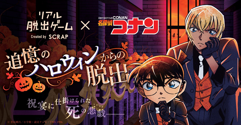 SCRAPは、大人気TVアニメ『名探偵コナン』とコラボレーションしたリアル脱出ゲーム『追憶のハロウィンからの脱出』の描き下ろし新ビジュアルならびにオリジナルグッズ情報、さらに開催都市の追加を発表しました。