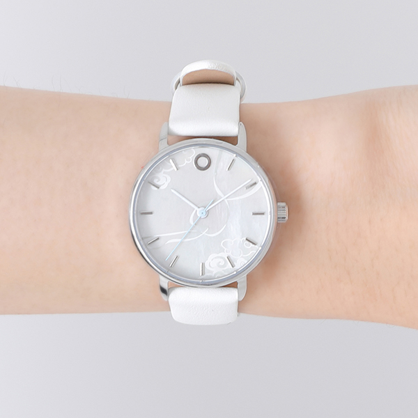 12時位置の三郎に託された指輪が輝き、秒針の優しい水色が時を刻む腕時計。短針・長針の銀色は、まるで謝燐の振るう剣のよう。