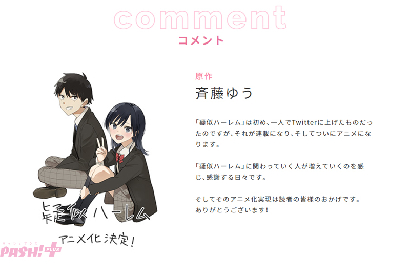 The post 累計560万いいね!のTwitter発人気ラブコメ『疑似ハーレム』がTVアニメ化! 岡本信彦さん「早見さんのレアな芝居を聞かせていただいております」キャストコメントも公開 first appeared on PASH! PLUS.