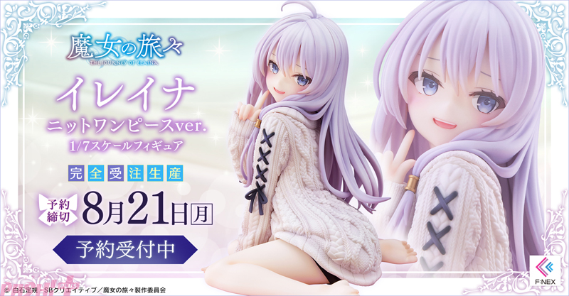 フリューは、高品質ホビーブランド“F:NEX(フェネクス)”の新商品として、TVアニメ『魔女の旅々』より『イレイナ ニットワンピースver. 1/7スケールフィギュア』を発売決定。“FURYU HOBBY MALL(フリューホビーモール)”にて予約受付中です。