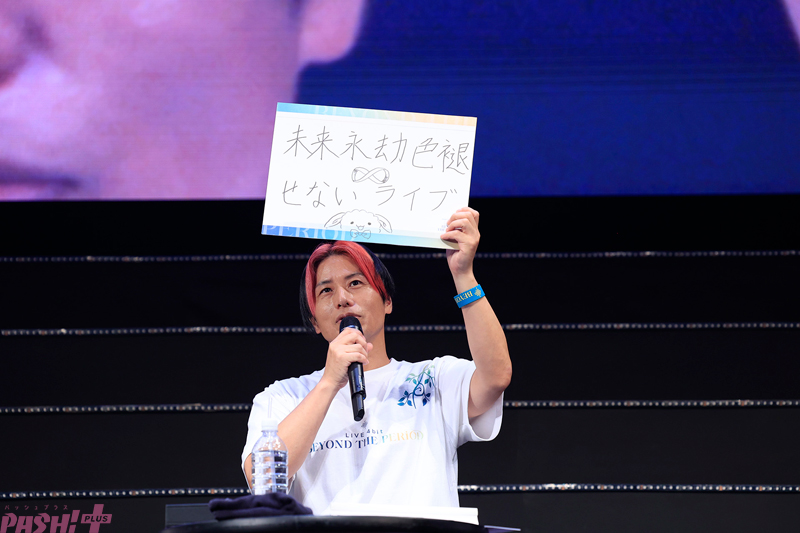 ブ』とフリップを掲げつつ「最初に企画した時に、席が無限にあるライブをしたい。将来アイナナの名刺になるような作品にしたいとプレゼンしました。開催10週目を迎えましたが、何度観ても色褪せないライブが出来上がりました」と当初に思い描いた夢が実現したことを喜んだ。