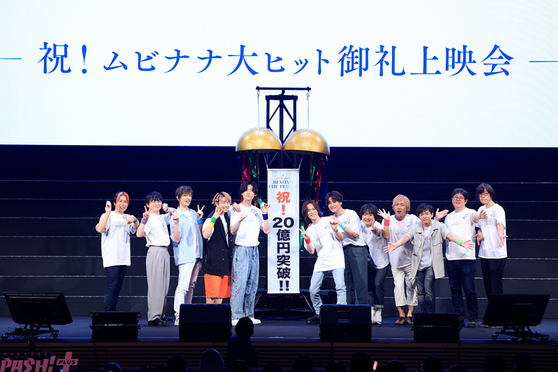 イベントの終盤では、ムビナナ大ヒットを祝してくす玉が用意された。紐を引くと、そこには興行収入20億円突破の文字が。さらに、21億円突破の速報が伝えられると、キャストからも観客からも驚きと喜びの声が上がり、一緒になってこの快挙を祝った。