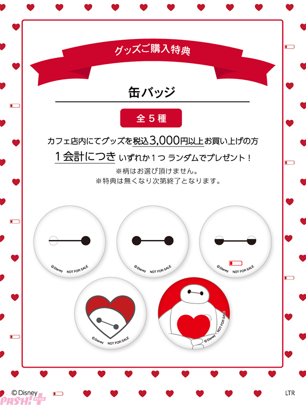 グッズ購入特典として、物販コーナーで税込3,000円以上お買い上げいただいた方に、「缶バッジ(全5種)」を1会計につき1点プレゼント。