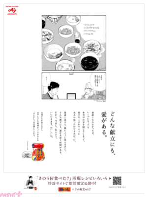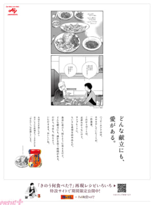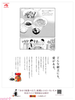 また、紙面記載のQRコードより、『ほんだし』を使った「きのう何食べた?再現レシピ」が掲載された特設サイトにアクセスすることができます。『ほんだし』を使った再現レシピをお楽しみください。