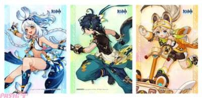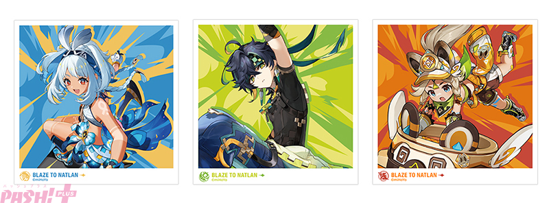 全国アニメイト・アニメイト通販で9月14日~10月27日まで開催する「『原神』 ナタ実装記念 animateフェア」では、期間中、『原神』関連グッズ・グラッテコラボ飲食を購入・予約内金2,200円(税込)毎に、特典「ましかくカード(全3種)」を1枚プレゼント。特典には、新地域「ナタ」の登場キャラクター「ムアラニ」「キィニチ」「カチーナ」のイラストを使用しています。