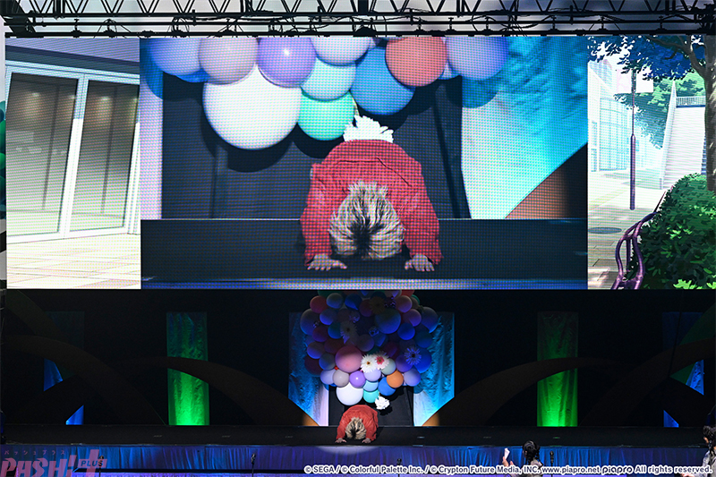 そして、大トリを飾る彰人(今井さん)は、ステージ2階で「本当にいつもありがとうございます!」の叫びとともに雄々しくすら感じる土下座を披露。本パートいちの盛り上がりを見せました。さらには、仕返しとばかりに雫(本泉さん)が「神代さんはやらないの?」とポツリ。流れが止まらない会場に、類(土岐さん)が潔く2階へ上がり、ブリッジからのセクシーポーズを実演! 来場者も大満足のアドリブタイムとなりました。