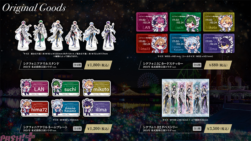 描き下ろしイラストやSDキャライラストを使用した東武動物公園コラボ限定オリジナルグッズを販売。また、過去に販売されたシクフォニ公式グッズも一部数量限定で販売します。