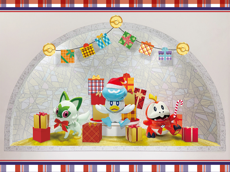 期間中、全国のポケモンセンターに、ホリデーシーズンならではの飾りつけが登場いたします。カラフルなプレゼントボックスを使った特別な装飾など、思わず写真を撮りたくなるようなデコレーションを展開いたします。ぜひ、店頭でご覧ください。