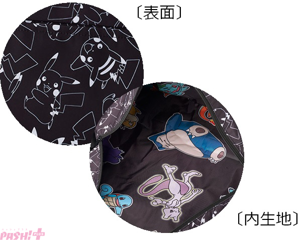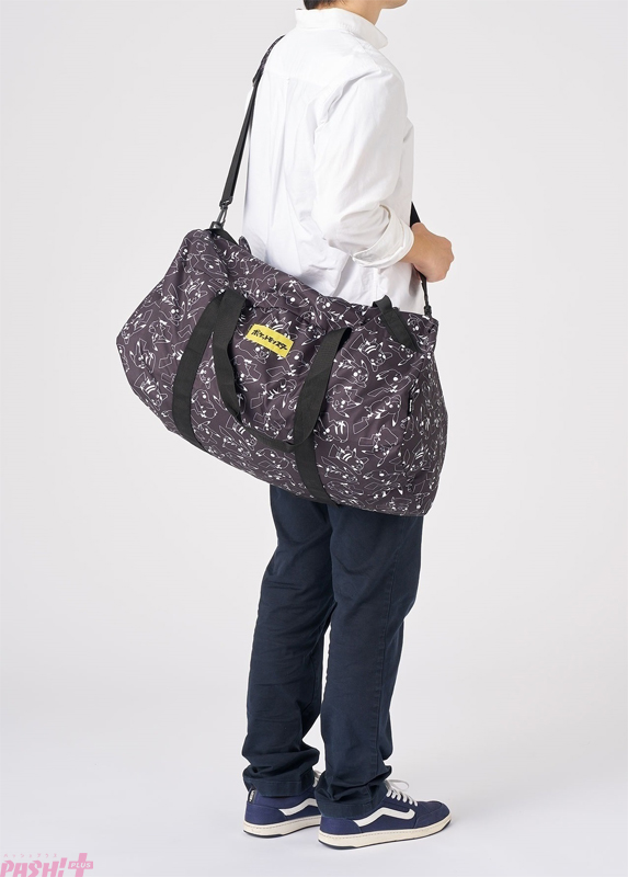 表面にはモノクロのピカチュウ! 内生地にもカビゴンやミュウツーなどがデザインされた大容量のトラベルバッグです。手提げ、ショルダー、リュック、キャリーオンができる4WAYタイプ。スーツケースのバーに通すことができるので、増えてしまった荷物も楽に移動できます。