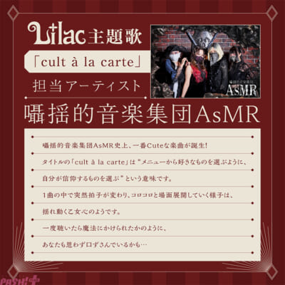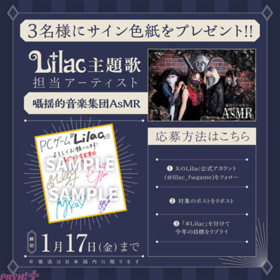 『Lilac』主題歌が『cult a la carte』に決定したことを記念して、『Lilac』公式X(旧Twitter)にて囁揺的音楽集団AsMRのサイン色紙が当たるキャンペーンが実施!