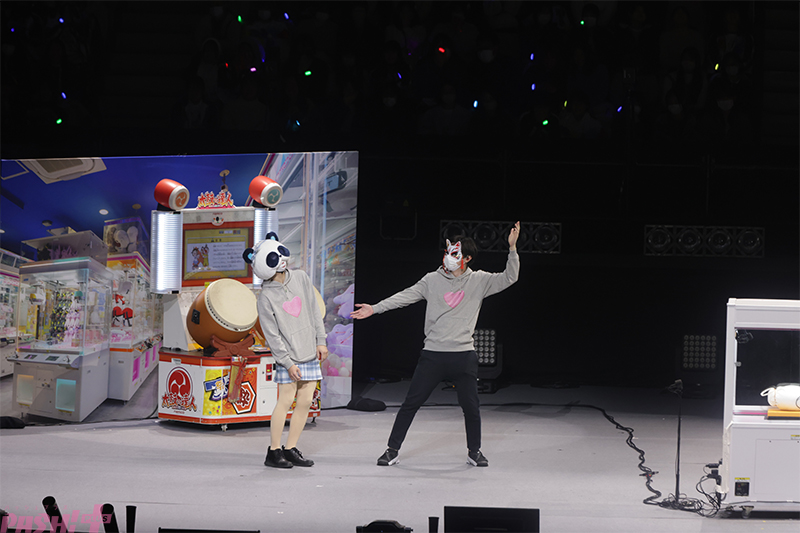 バカップル役の彼氏ブーくん(Broooock)・彼女ムーちゃん(Nakamu)が手を繋いで登場した場面は会場から大歓声が上がり、上手すぎるシャークんの「太鼓の達人」が全員の視線を奪う場面では自然発生的に会場全体から手拍子が起こり、会場に一体感が生まれました。終始笑い声が絶えず、Nakamu脚本のコントは大成功に終わりました。