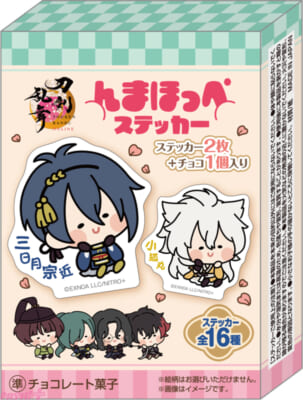 お気に入りの刀剣男士をスマホや好きなところに貼って連れ出せるステッカー2枚セット(チョコ1個付き)。