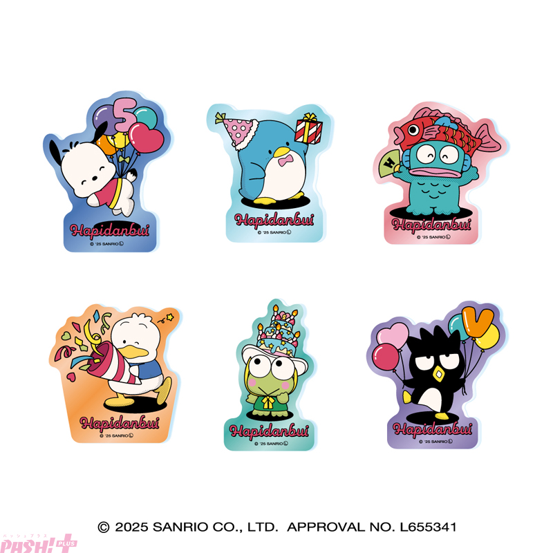 「はぴだんぶい」は、サンリオの男のコキャラクターユニットです。1980年代~1990年代に活躍した、ポチャッコ、タキシードサム、バッドばつ丸、あひるのペックル、ハンギョドン、けろけろけろっぴの個性あふれる6人の男のコたちで結成され、2025年で5周年を迎えました。公式Xのアカウントは、30万人超えのフォロワーを持ち、ますます人気を集めています。