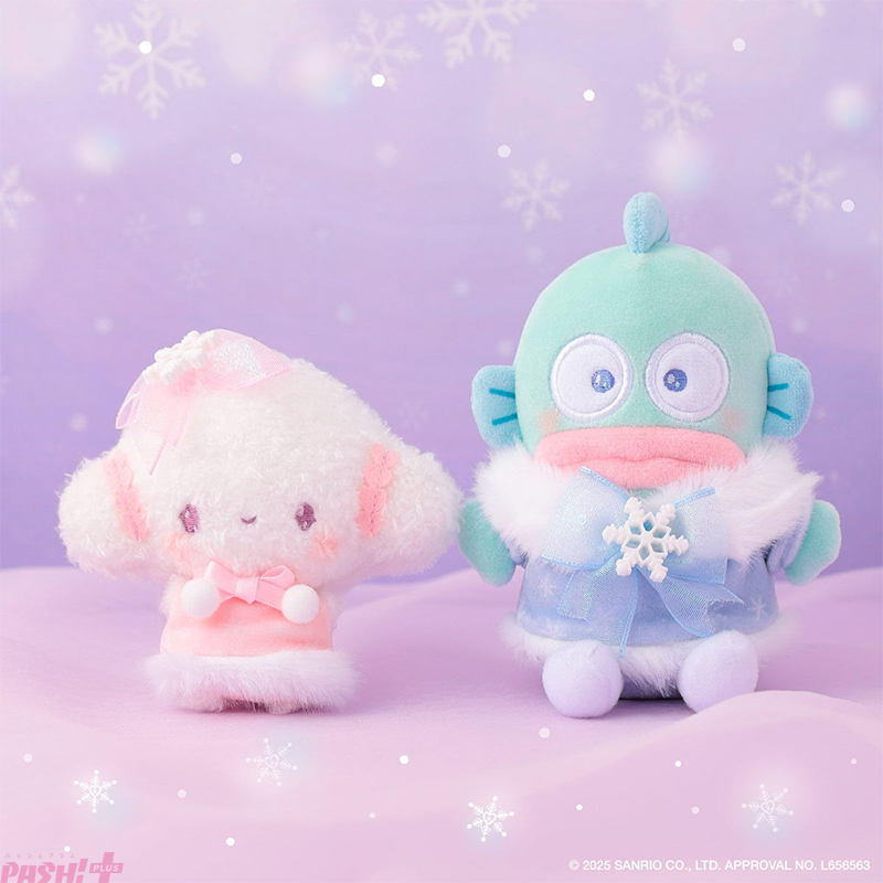 サンリオキャラクターズより、カラフルでふわふわな衣装がキュートなむにゅぐるみマスコットが登場! オーロラカラーの大きなリボンには雪の結晶のモチーフ付きです。
