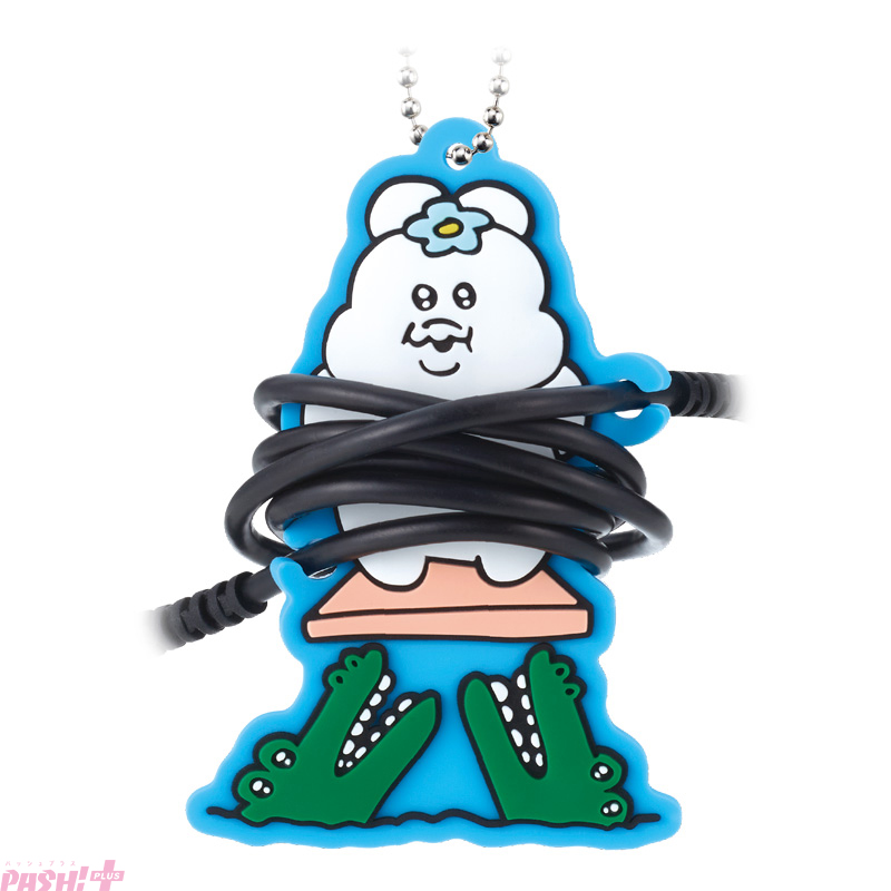 ラインナップはワニ、がんじがらめ、柱、丸焼き、太鼓の全5種。絡まりがちなコード類をすっきりと整理して持ち歩くことができちゃいます。コードを巻き付けると、囚われの身になったんぽちゃむの姿が! さらに、裏面には颯爽と駆けつける大親友「きみまろ」の姿も。