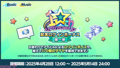 日替わりでアイドルによるログインボイスとダイヤ最大170個のログインボーナスを入手できます。