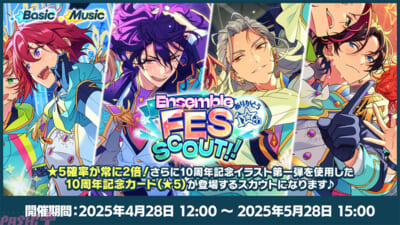 10周年を記念した超! 豪華なフェススカウトが開催! ★5確率が常に2倍で、10周年記念イラスト第一弾を使用した10周年記念カード(★5)が登場するスカウトです。