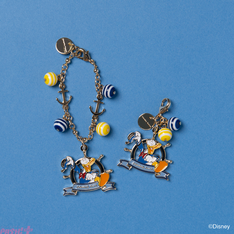 「ドナルド」と「デイジー」のアートをチャームにデザイン。「ドナルド」をイメージした配色にマリンテイストを連想させる、碇マークやボーダー、「デイジー」をイメージしたラベンダーやピンクの配色にお花がデザインされた華やかなアイテム。同シリーズのバッグや小物とあわせて、コーディネートを楽しんでください。