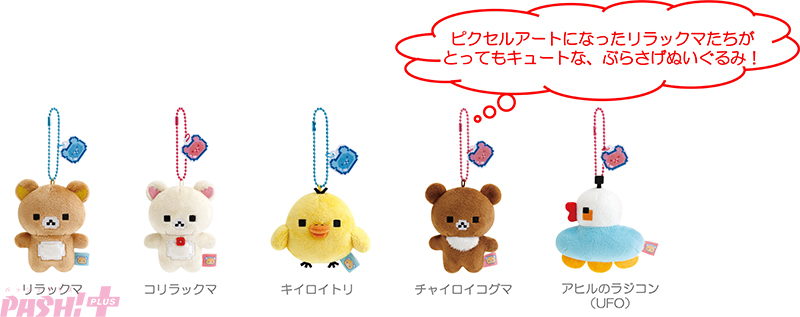 ゲーム機型のステッカーやポーチ、ゲーム機型のパッケージに入ったピクセルアートのシール、ピクセルアートフェイスのガジェットポーチやぶらさげぬいぐるみ、コリラックマがいちご勇者、キイロイトリが冒険者になったぶらさげぬいぐるみなど、ワクワクするようなアイテムがたくさんラインナップされています。