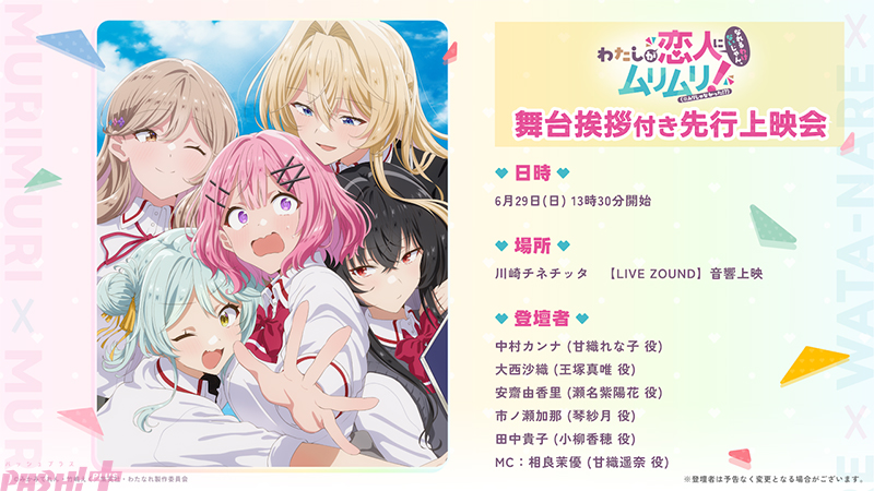 また、2025年6月29日(日)に川崎チネチッタにて、『わたなれ』の先行上映会が開催決定。当日は、本編より第1話を一足早くスクリーンで楽しめるほか、上映後にはメインキャスト陣の舞台挨拶も実施予定です。