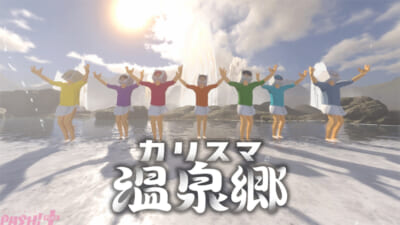 本日0時に配信開始された超人的シェアハウスストーリー『カリスマ』の新曲『カリスマ温泉郷』のミュージックビデオが『カリスマ』公式YouTubeチャンネルにて公開されました。