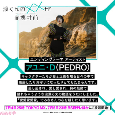 TVアニメ『渡くんの××が崩壊寸前』の放送時期が7月4日に決定。主題歌を使用したPVやキービジュアルも解禁となりました。