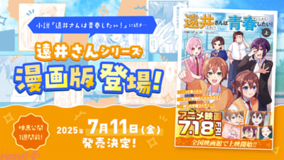 「ジェル」が手掛けるオリジナルアニメ動画『遠井さん』シリーズは、2024年12月に発売された小説『遠井さんは青春したい!』に続き、2025年7月18日(金)には本シリーズ初となる劇場版アニメの公開が決定しています。