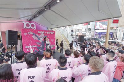 渋谷に、ポップ☆ステップのイラストが描かれたステージが登場し、多くのファンが足を止めてステージに集結。『ヴィジランテ』で“自称フリーアイドル”として活動する少女・ポップ☆ステップは、作中でも度々ゲリラライブを行っているが、今回は本編さながらに渋谷の街でゲリラライブを決行することとなりました。