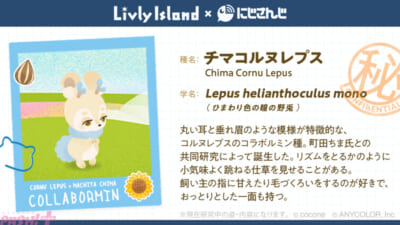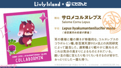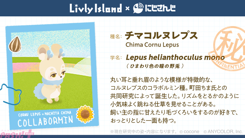 そして今回実現した『リヴリーアイランド』×「にじさんじ」コラボでは、日頃からリヴリーのお世話を熱心に取り組んでいる戌亥とこ、町田ちま、壱百満天原サロメのライバー3名を“バーチャル研究員”として迎え、さまざまな企画をご用意しました。