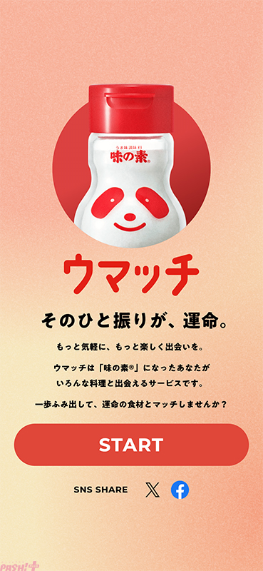 また、新WebCMの公開に合わせて、『味の素』と相性がぴったりな食材と出会えるマッチングアプリ風のWebコンテンツ「ウマッチ」もリリース。擬人化された食材キャラクターと出会いながら、『味の素』の新たな楽しみ方を発見できる新感覚のコンテンツをぜひお楽しみください。
