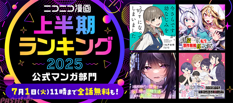 ドワンゴは、日本最大級のWEBマンガサービス「ニコニコ漫画」の2025年上半期ランキングTOP25を発表します。また、2025年6月17日(火)~7月1日(火)の期間、「公式マンガ部門」でTOP10に選出された作品の無料で読めるエピソードを増量します。