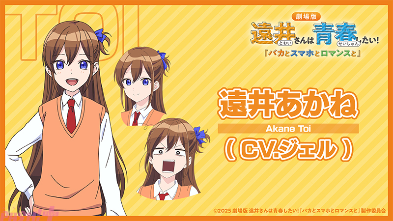 STPRは、所属クリエイター・ジェル(すとぷり)が原作を手がける劇場アニメ『遠井さんは青春したい!「バカとスマホとロマンスと」』(2025年7月18日(金)より全国公開)のメインキャストおよびエンディング主題歌に関する情報を、2025年6月24日(火)に行われた「ジェル」の配信内にて発表しました。