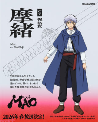 単行本全世界累計発行部数は2億冊を突破し、『うる星やつら』・『めぞん一刻』・『らんま 1/2』・『犬夜叉』・『境界の RINNE』など、大ヒット作を生み出し続ける高橋留美子さんの最新作『MAO』がTVアニメ化決定。2026年春に放送決定となりました。
