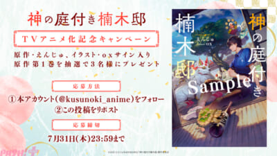 TVアニメ化を記念してプレゼントキャンペーンが実施。アニメ公式Xをフォロー&該当の投稿をリポストした方を対象に、原作・えんじゅさん、イラスト・oxさんのサイン入り原作単行本第1巻を抽選で3名にプレゼント!