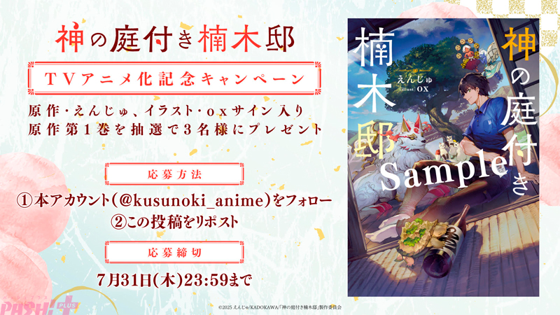 The post シリーズ累計50万部突破の『神の庭付き楠木邸』がTVアニメ化決定! 主人公・楠木湊と山神を描いたティザービジュアルも公開 first appeared on PASH! PLUS.