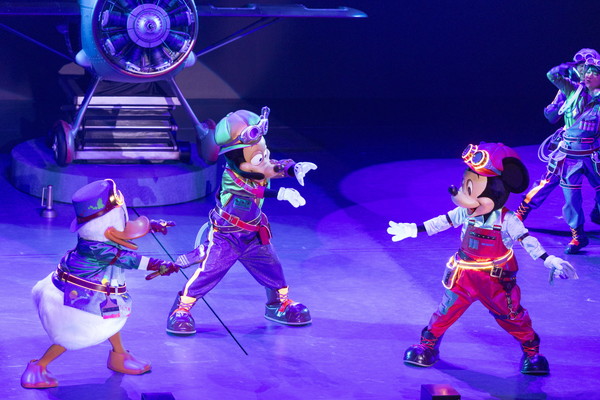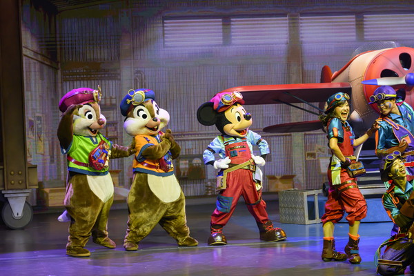 物語は、夢を追いかけるパイロットのミニーや、個性豊かな職人たちが織りなす奮闘劇。ショーの途中では、それぞれの想いに呼応するように、ディズニー映画やピクサー映画の人気キャラクターたちも登場し、ストーリーに彩りと感動を添えていきます。ステージ上では、バラエティー豊かなシーン展開と遊び心あふれるパフォーマンスが次々に繰り広げられ、観る者すべてを夢と冒険の空へと誘います。子どもから大人まで、誰もが胸を躍らせ、笑顔になれるショーです。