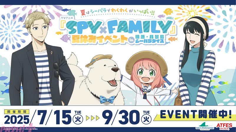 7月15日(火)から9月30日(火)までの期間、TVアニメ『SPY×FAMILY』との夏休みイベント「夏はシーパラでわくわくがいっぱい!!TVアニメ『SPY×FAMILY』夏休みイベント in横浜・八景島シーパラダイス」が開催されます。