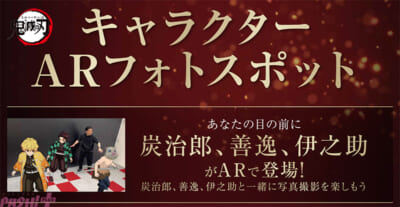 また、過去イベントで実施してきた「キャラクターAR フォトスポット」が、7月18日(金)より全国劇場にて順次展開することが決定しました。今回は炭治郎、善逸、伊之助の3人が同時に登場し、録りおろしのボイスが聴けるほか、炭治郎の挨拶が各都道府県で異なる内容となっています。キャラクターだけでも、3人と一緒にでも、ぜひ劇場で撮影をお楽しみください。
